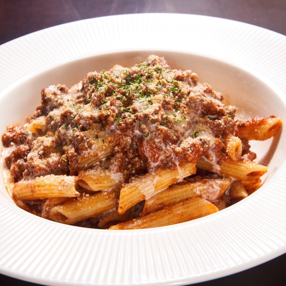 自家製の牛タンミートソースで仕上げ。